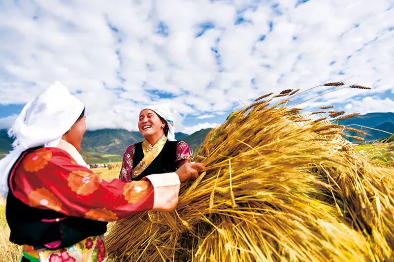 經(jīng)黨中央批準、國務院批復,自2018年起,將每年農(nóng)歷秋分設立為中國農(nóng)民豐收節(jié),這是第一個在國家層面為農(nóng)民設立的節(jié)日,進一步彰顯了“三農(nóng)”工作重中之重的基礎地位。 圖為2018年9月23日,首個中國農(nóng)民豐收節(jié),拉薩市林周縣松盤鄉(xiāng)松盤村兩名藏族農(nóng)民在田間。 新華社記者 覺果/攝