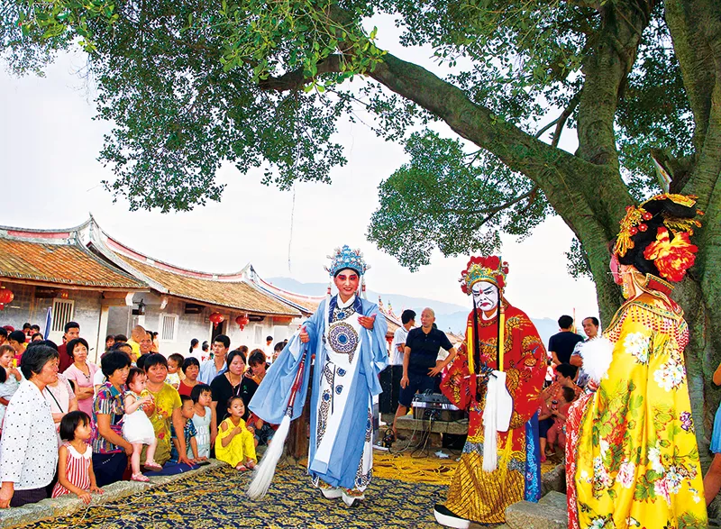 福建省龍海市東園鎮(zhèn)埭美村是閩南紅磚建筑文化的杰出代表,被稱為“水上古村落”。近年來,當?shù)卮罅嵤┼l(xiāng)村振興戰(zhàn)略,對環(huán)境進行整體改造提升,村容村貌煥然一新,鄉(xiāng)村文化發(fā)展繁榮。圖為2018年6月21日,一家薌劇團在埭美村榕樹下表演傳統(tǒng)薌劇《貍貓換太子》,吸引眾多居民及游客。 新華社記者 姜克紅/攝