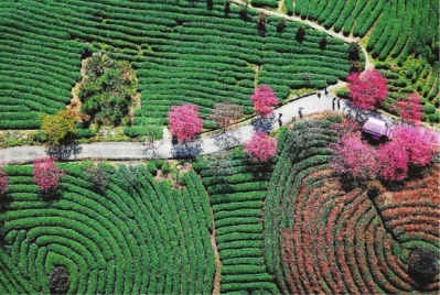 良好的生態(tài)環(huán)境是最公平的公共產(chǎn)品,是最普惠的民生福祉。圖為游客在福建省漳平市一處櫻花茶園內(nèi)游覽。新華社發(fā)