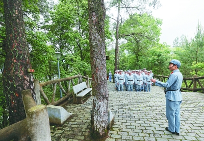 江西省瑞金市葉坪鄉(xiāng)華屋村是遠(yuǎn)近聞名的“紅軍村”。圖為游客正在參觀華屋村“信念樹(shù)”。