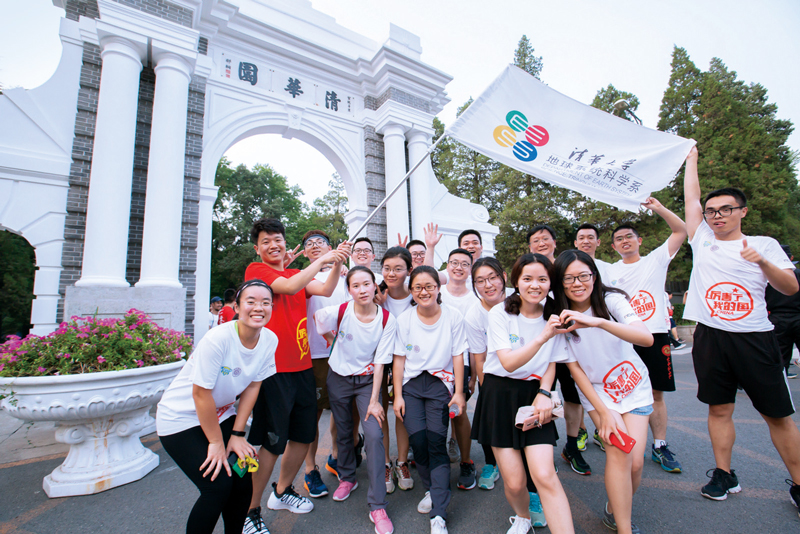 每年的畢業(yè)季,清華大學(xué)都會(huì)舉行畢業(yè)長(zhǎng)跑,即將離開(kāi)母校的學(xué)子們沿著精心設(shè)計(jì)的路線,依次跑過(guò)那些承載著清華記憶的場(chǎng)所,重溫“自強(qiáng)不息 厚德載物”的校訓(xùn),上好離校前的“最后一課”。圖為2018年7月4日,畢業(yè)生們?cè)谥黝}為“擁抱新時(shí)代 青春正起航”的長(zhǎng)跑活動(dòng)中在二校門(mén)前合影。 清華大學(xué) 李浩然/攝