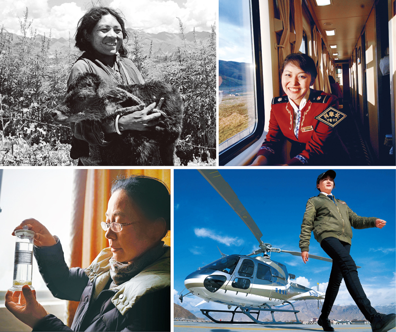 60多年來,西藏各族人民的生活條件全面改善,幸福指數(shù)大幅提升。左上圖:1959年,翻身農(nóng)奴卓瑪?shù)谝淮畏值綄儆谧约旱男∨伲ㄐ氯A社記者 李長永/攝)。左下圖:2019年2月28日,研究牦牛的藏族女博士姬秋梅在西藏自治區(qū)農(nóng)科院畜科所查看實驗樣本(新華社記者 普布扎西/攝)。右上圖:2007年9月28日,青藏鐵路線上的首位藏族女列車長索朗德吉(新華社記者 覺果/攝)。右下圖:2019年3月20日,來自當(dāng)雄草原的藏族女直升機駕駛員益西(新華社記者 晉美多吉/攝)。