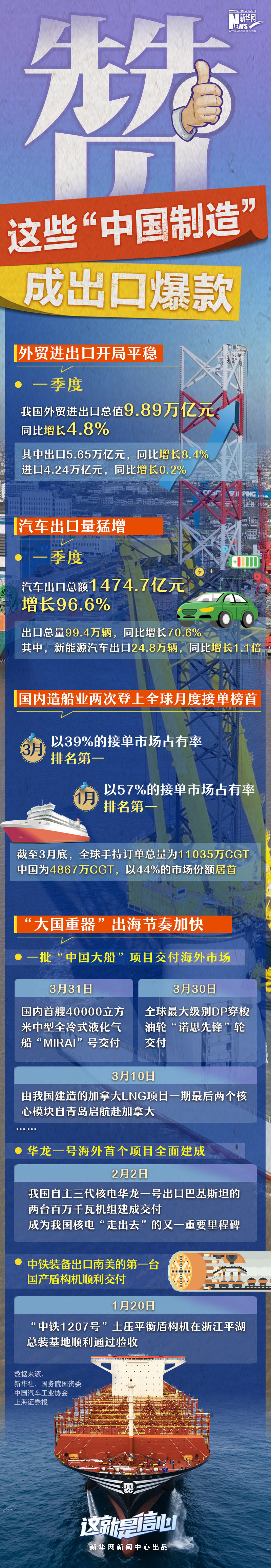 制造業(yè)是實(shí)體經(jīng)濟(jì)的重要組成部分。一季度,我國(guó)汽車、造船等制造業(yè)細(xì)分領(lǐng)域出海步伐加快,成績(jī)表現(xiàn)搶眼。