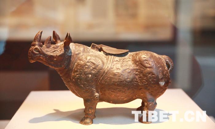 圖為拉薩海關(guān)查獲的明代青銅犀牛,陳列于中國海關(guān)博物館