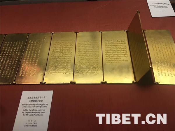 圖為西藏文化博物館的展品“道光皇帝冊封十一世達(dá)賴?yán)镏饍浴?,原件藏于西藏博物館。攝影:白一宏