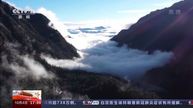 節(jié)日期間的海螺溝景區(qū)晴空萬(wàn)里,海拔6410米的貢嘎山金銀峰,在藍(lán)天白云映襯下更顯巍峨壯麗。