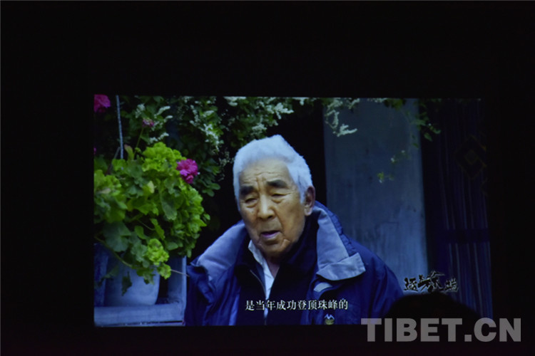 圖為第十八屆“第三極”中國(guó)西藏登山大會(huì)系列活動(dòng)之一戶外運(yùn)動(dòng)文化互動(dòng)夜上播放的西藏登山專題片《逐夢(mèng)云端》畫面 攝影:王媛媛