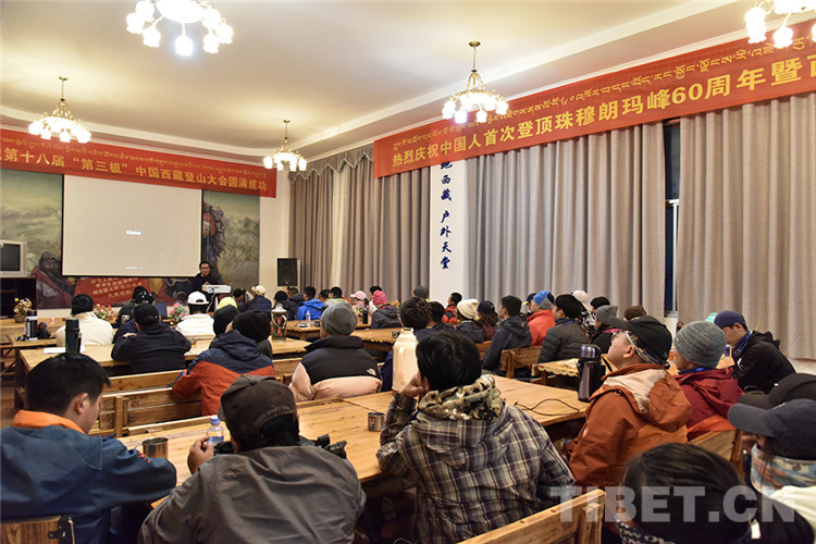 當(dāng)晚,第十八屆“第三極”中國(guó)西藏登山大會(huì)系列活動(dòng)之一戶外運(yùn)動(dòng)文化互動(dòng)夜在此舉行。來自全國(guó)各地近200名戶外運(yùn)動(dòng)愛好者共同了解了西藏登山隊(duì)成立60年以來的攀登歷史和傲人成績(jī),感知“不畏艱險(xiǎn)、頑強(qiáng)拼搏、團(tuán)結(jié)協(xié)作、勇攀高峰、祖國(guó)至上”的西藏登山精神。