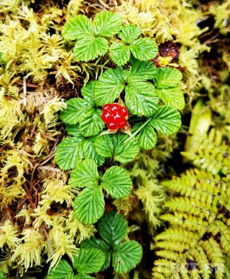 在草叢中偶爾會(huì)發(fā)現(xiàn)紅艷艷的刺莓果瑪瑙似的惹人饞,這是我兒時(shí)的最愛(ài),放在嘴里酸甜酸甜的。