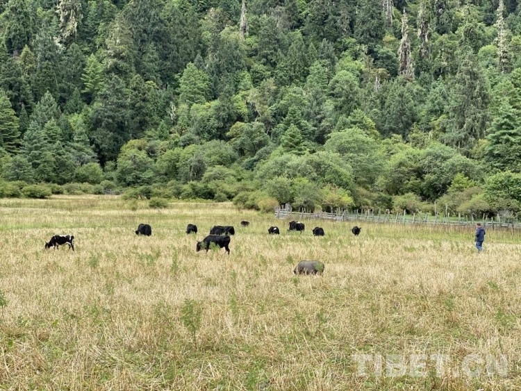 森林邊有一片大大的牧場(chǎng),我靜靜地躺下來(lái)。牧場(chǎng)遠(yuǎn)處有牦牛在吃草,聽(tīng)村民講這是野牦牛,因?yàn)檫@里絕少有人來(lái),它們對(duì)人也沒(méi)有恐懼。