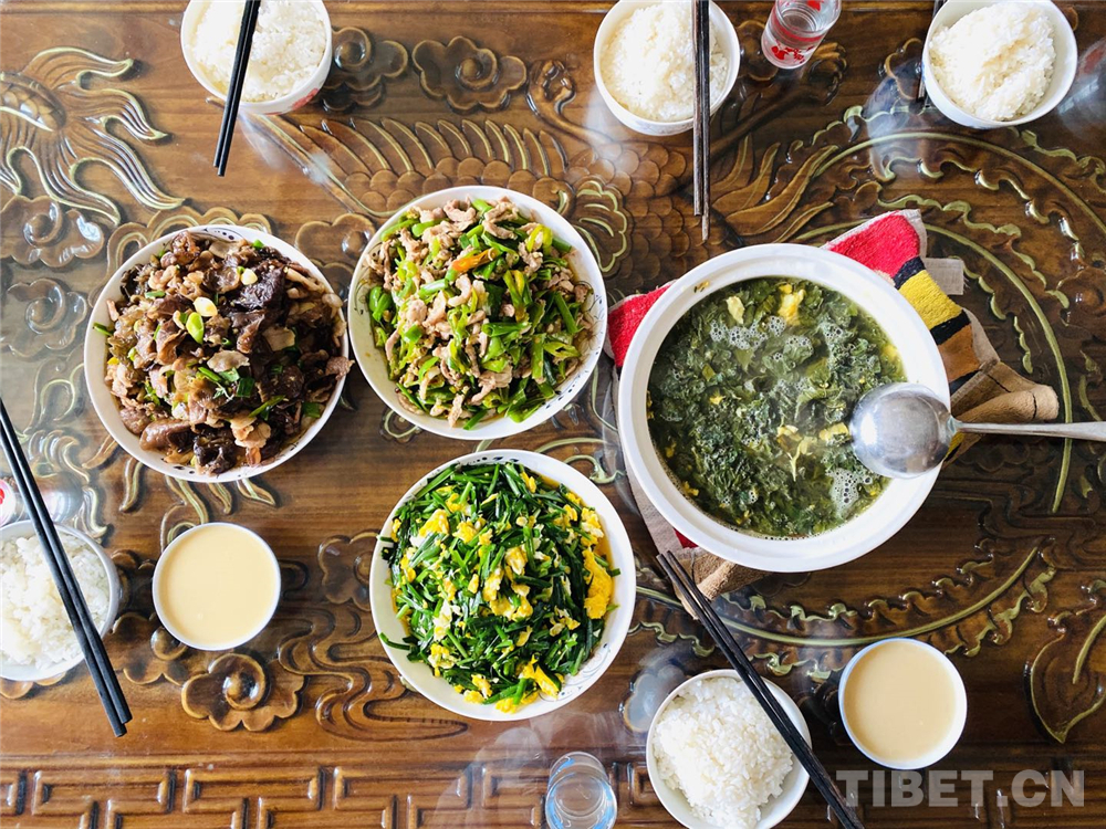 次增做得一手好菜,木耳青椒炒肉、韭菜炒雞蛋,還有蕎麥葉煮蛋湯,家常菜讓人感到非常親切和感動。次增對我們說:“開展生態(tài)宜居示范村建設(shè)后,整個(gè)村變化特別大,以前村里的土路高低不平,現(xiàn)在道路平整,路也寬了,給我們帶來了很大的幸福,不是光我一家,我們整個(gè)村子家家戶戶都覺得非常滿意?!?/p>