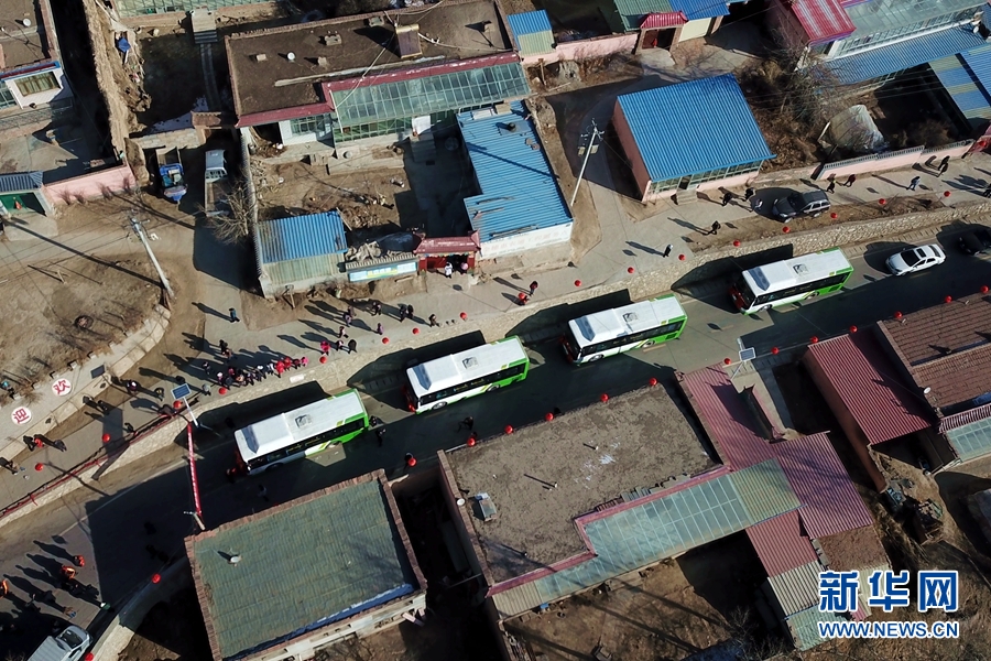 2018年1月16日,青海省首條交通扶貧公交專線在卡陽(yáng)村開(kāi)通運(yùn)營(yíng),四輛嶄新的新能源公交車(chē)統(tǒng)一發(fā)車(chē)。新華網(wǎng) 潘彬彬攝