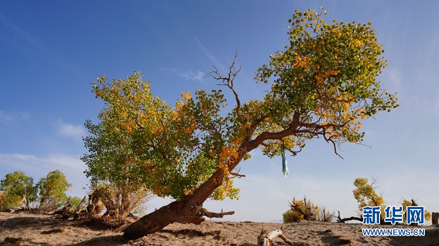 生命力頑強(qiáng)的胡楊為荒漠增添了勃勃生機(jī)。新華網(wǎng) 潘彬彬 攝