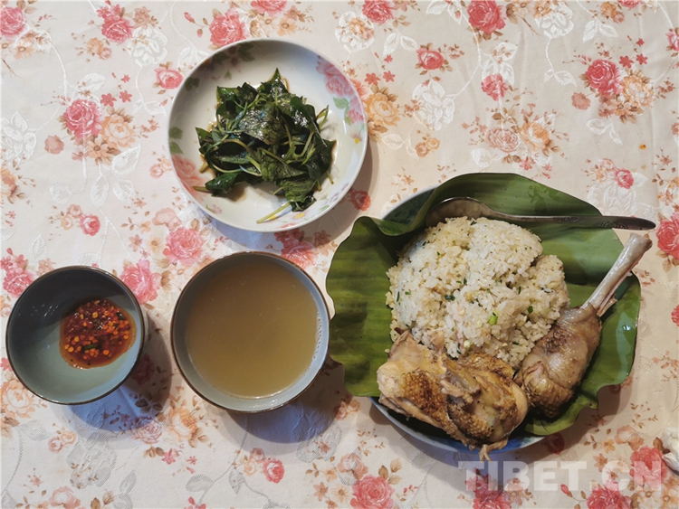 說起僜人發(fā)傳統(tǒng)文化,不得不說僜人的手抓飯。煮米飯、殺雞、搗辣椒……原料都產(chǎn)自深山密林。散養(yǎng)的土雞、地里的谷米和辣椒,再配上山里的香草、香料,就做成了風(fēng)味獨(dú)特的僜人手抓飯,成為僜人待待的保留節(jié)目。