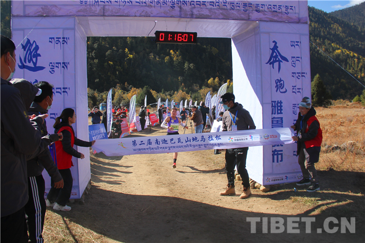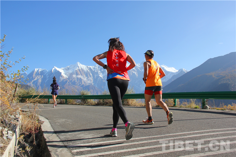 在雪山的映襯下,參賽選手們身穿各色服裝,伴隨著周邊村民的加油助威,一路抵達終點。最終,來自西藏自治區(qū)山南市的扎巴以59分02秒的成績獲得男子組第一名,邊片以1小時16分12秒的成績奪得女子組第一名。