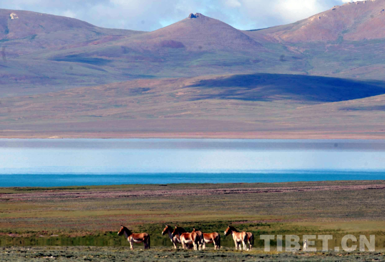 這是在藏北無人區(qū)一湖泊前悠閑生活的國家一級(jí)保護(hù)動(dòng)物藏野驢(唐召明2009年攝)