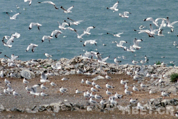 這是在藏北高原班公錯(cuò)鳥島棲息的成群棕頭鷗(唐召明1995年攝)