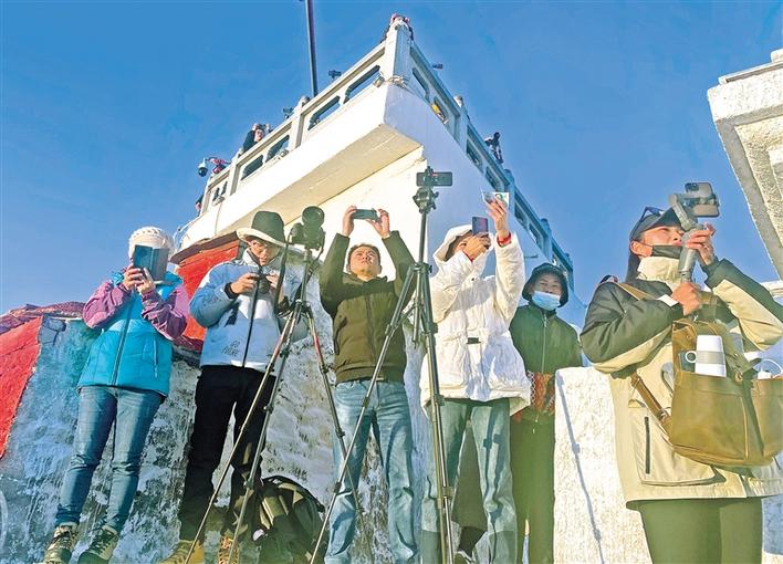 圖為游客在布達拉宮廣場觀景臺上拍攝布達拉宮。 記者 洛桑 攝