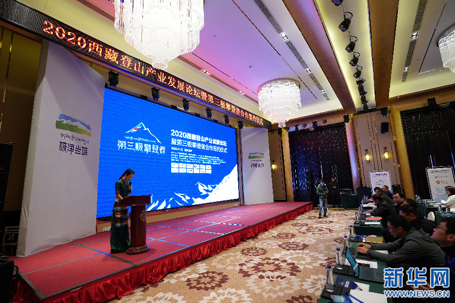 2020西藏登山產(chǎn)業(yè)發(fā)展論壇暨第三極攀登者合作簽約儀式現(xiàn)場(11月12日攝)。新華社記者 詹彥 攝