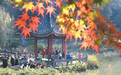 近日,江蘇南京棲霞山景區(qū)的紅葉樹(shù)種進(jìn)入最佳觀賞期,漫山遍野的紅葉燦若云霞,令游客流連忘返。李文寶攝(新華社發(fā))