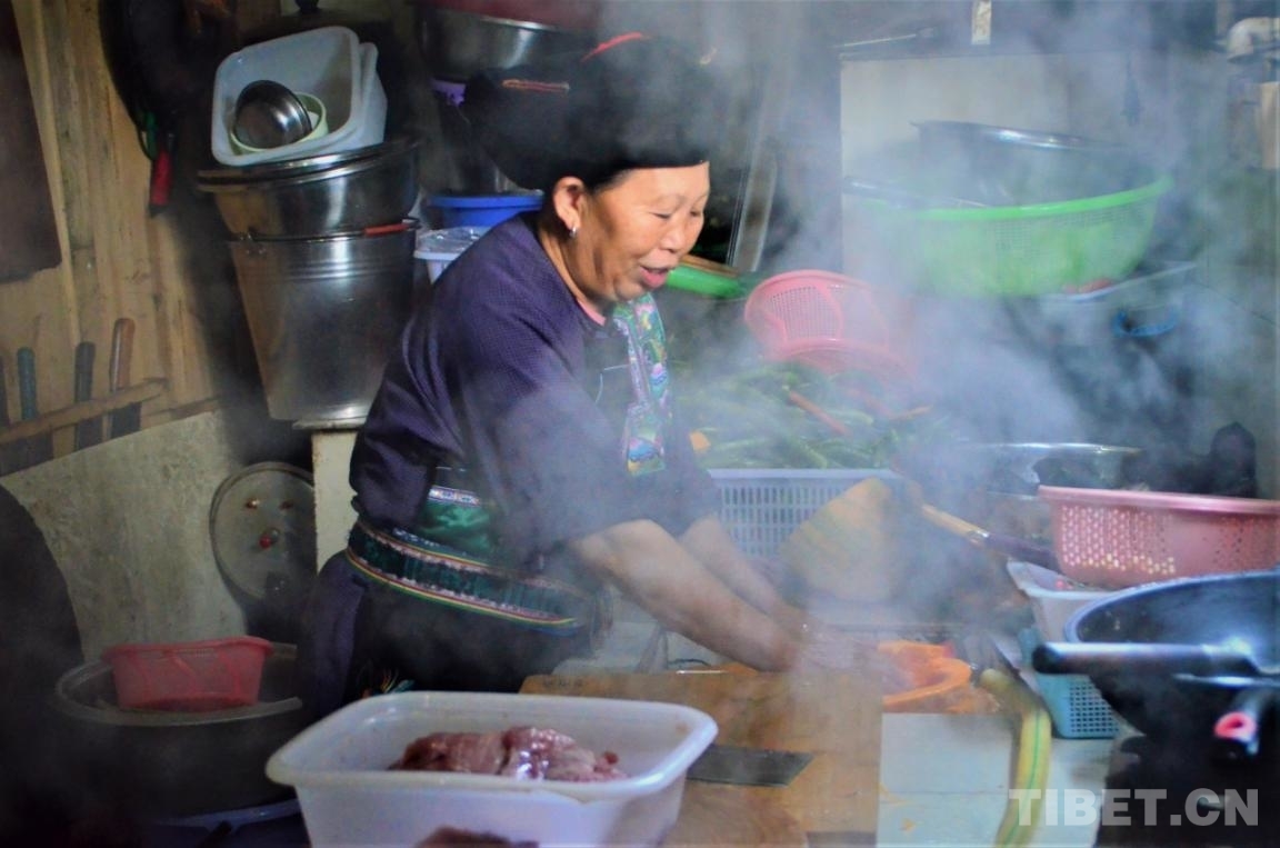 中國(guó)西藏網(wǎng)訊 上午十點(diǎn)多,差不多到了楊珍壽一天之中最忙碌的時(shí)候。她有條不紊地翻炒著大鐵鍋里的雞肉,母親在她身后切著菜,父親在劈著柴火。再過(guò)一個(gè)小時(shí)左右,自家的農(nóng)家樂(lè)就要開(kāi)飯了。每到周末,更多游客會(huì)來(lái)到這里,忙碌翻倍,收入也會(huì)翻倍。