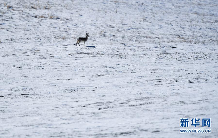 這是10月29日在青海省玉樹(shù)藏族自治州境內(nèi)拍攝的一只藏原羚。新華社記者 張龍 攝