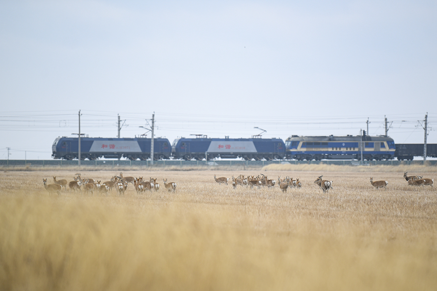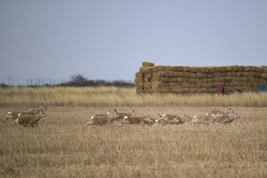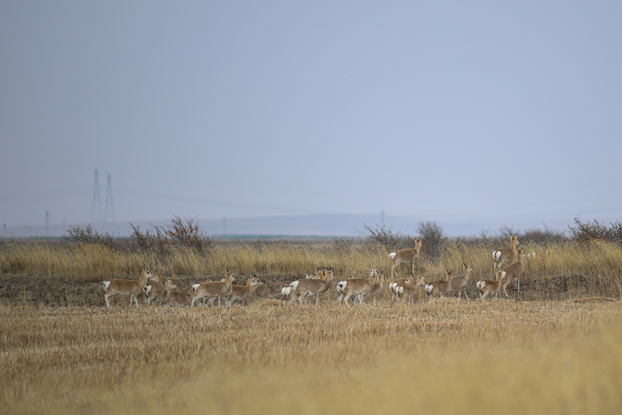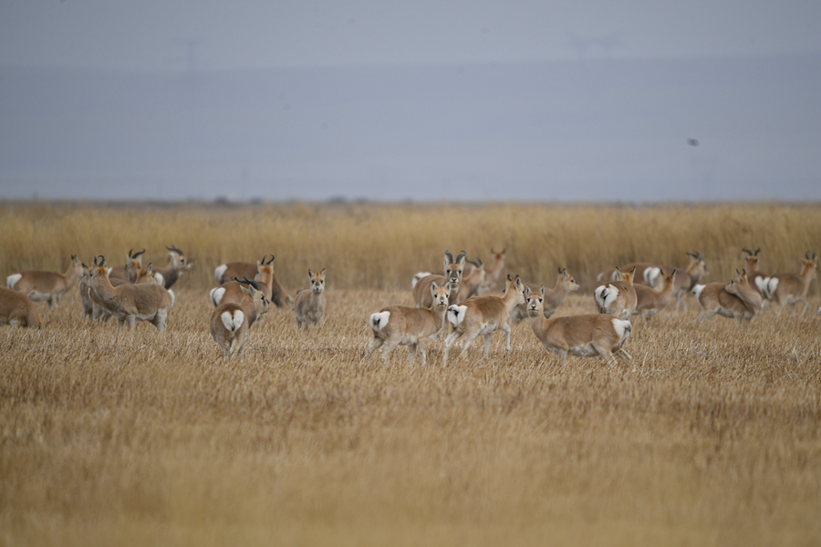 11月20日,一群普氏原羚在青海湖普氏原羚特護區(qū)內(nèi)活動。新華網(wǎng) 潘彬彬 攝