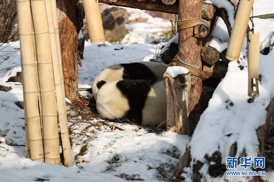 近日,受冷空氣影響,青海省西寧市迎來降雪。西寧熊貓館的四只大熊貓在雪天里享受著吃竹子、“打盹兒”的樂趣。[詳細(xì)]