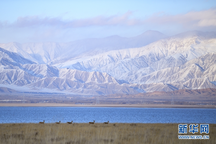 一群鵝喉羚在都蘭湖國(guó)家濕地公園內(nèi)活動(dòng)。(11月21日攝)新華網(wǎng) 潘彬彬攝