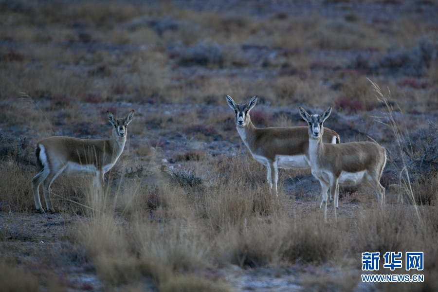 在都蘭湖國(guó)家濕地公園內(nèi)拍攝到的鵝喉羚。(11月21日攝)新華網(wǎng) 潘彬彬攝