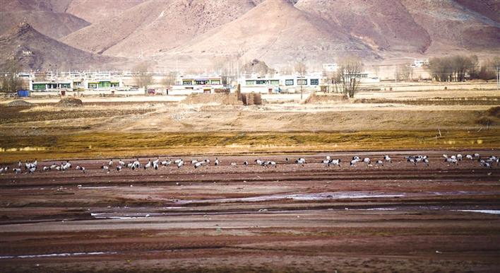 又是一年遷徙季,又是一年觀鶴時。為了繁殖和越冬,候鳥黑頸鶴每年都會進行兩次遷徙。黑頸鶴是國家一級保護動物,藏語為“沖沖”,被藏族人民譽為“吉祥鳥”。每年入冬,成群的黑頸鶴從藏北遷徙至拉薩河及雅魯藏布江流域等地越冬,次年3月中旬北上繁殖。目前,已進入越冬季,成群結隊的黑頸鶴已在拉薩市林周縣境內如期赴約。