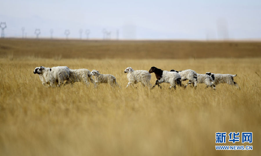 在青海省剛察縣泉吉鄉(xiāng)寧夏村,達(dá)日杰家的小羊羔在草場上(11月12日攝)。新華社記者 張宏祥 攝