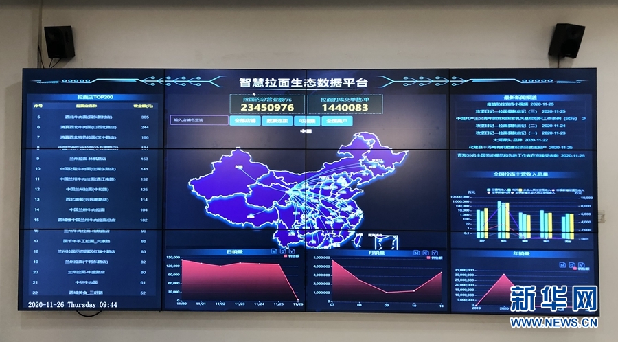 圖為“智慧拉面”生態(tài)數(shù)據(jù)平臺。新華網(wǎng) 魚昊攝