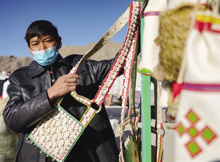 “這個小包好精致,太好看了?!钡┰龅臄偳皣@著一群人?!澳莻€最小號的包還有嗎?”“不好意思,都賣完了,您看看其他型號的吧?!眮碜粤种ナ欣士h的旦增已經(jīng)是第四次參加物資交流會了,此次物資交流會他不僅帶來了核桃、辣椒、蘋果等當(dāng)?shù)靥厣a(chǎn)品,還帶來了牦牛皮制作的手工包。