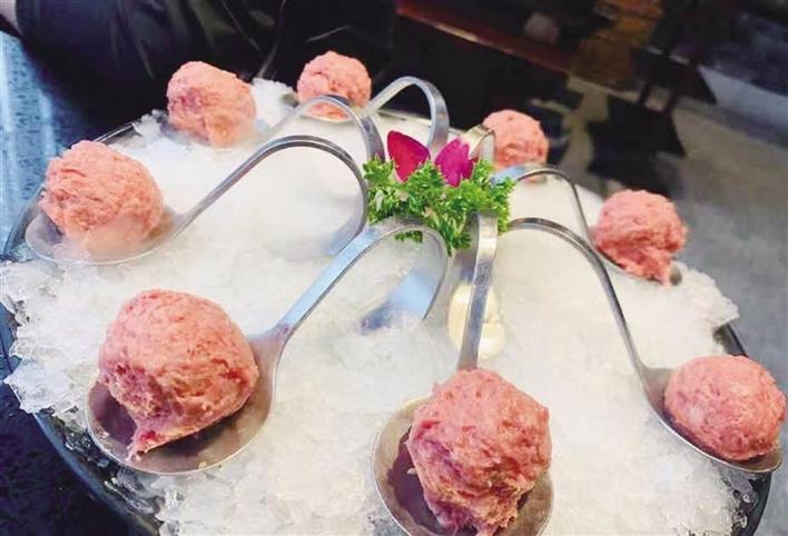 “我們鎮(zhèn)三關(guān)老火鍋所采用的有機(jī)特色菜品全部出自自家農(nóng)場,綠色健康無污染,顧客可以吃得放心、安心?;疱仠讉鞒姓谥貞c火鍋做法,辣而不燥,口齒留香,讓人愛不釋口。同時,采用純牛油熬制,沒有加入任何添加劑,吃完后不會全身彌漫著火鍋味道。我們將繼續(xù)為大家?guī)斫】禒I養(yǎng)的火鍋,歡迎前來品嘗。”代紅介紹。(圖 記者 張雪芳)