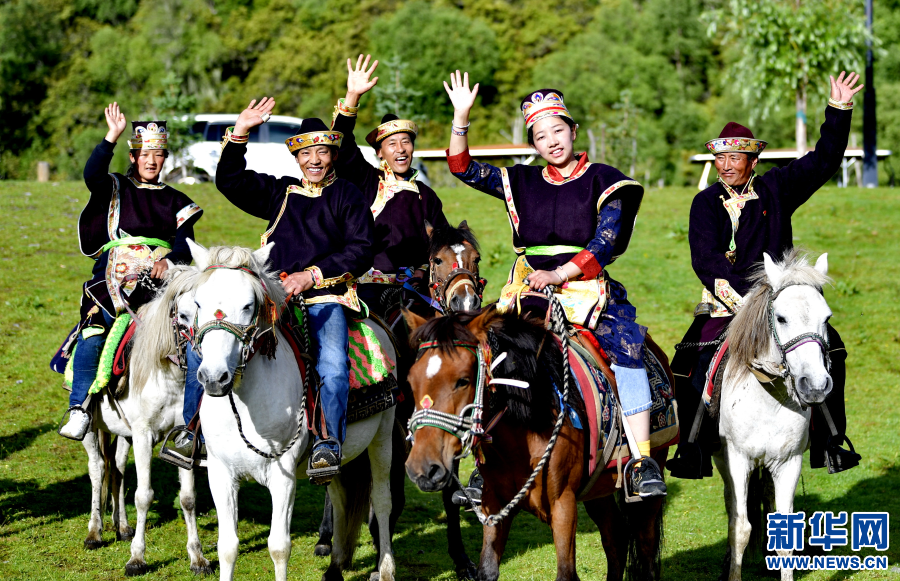 魯朗旅游小鎮(zhèn)農(nóng)牧民向游客招手致意,旅游業(yè)成為當(dāng)?shù)剞r(nóng)牧民重要收入來源(7月26日攝)。新華社記者 張汝鋒 攝
