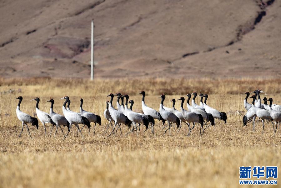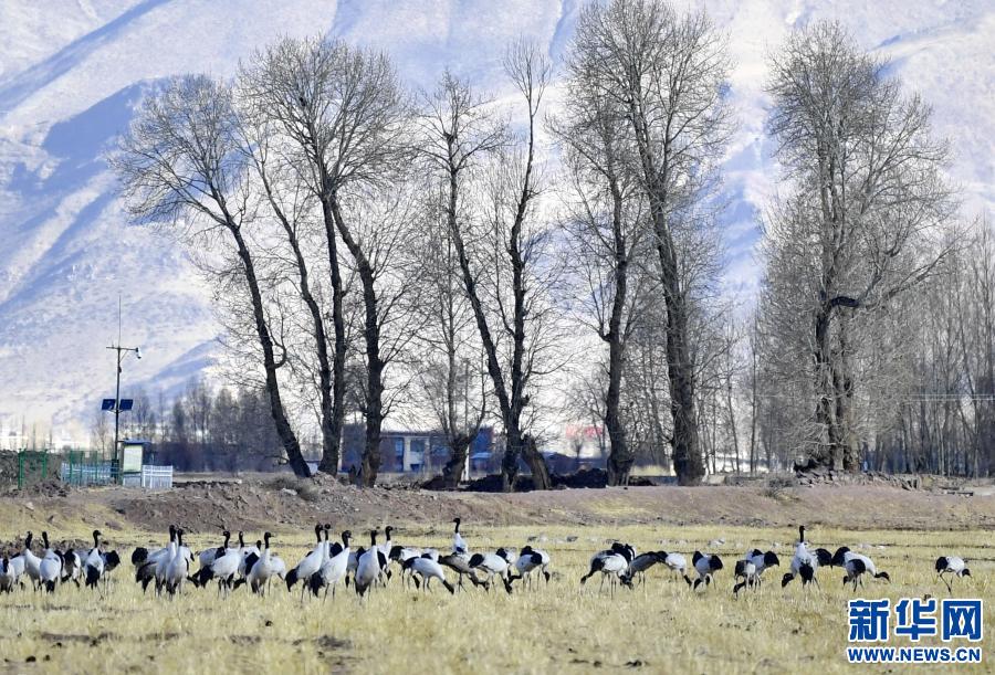 這是12月12日在林周縣黑頸鶴自然保護(hù)區(qū)卡孜鄉(xiāng)拍攝的黑頸鶴。新華社記者 黃豁 攝