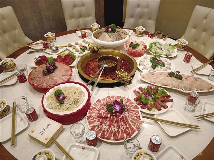 巴蜀寬宅門火鍋拉薩旗艦店每一道菜的擺盤相當精致,看上去就讓人食欲大增?!胺昴赀^節(jié),家人聚會首選地就在巴蜀寬宅門火鍋。我喜歡特辣火鍋,吃起來夠爽,毛肚、鴨腸、千層肚、鴨郡花、鴨腸、寬宅石磨豆花……都是我們必選的菜品,雖然每次都點這些菜品,但是百吃不厭?!逼疯b團成員吳先生告訴記者。