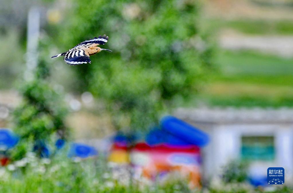 戴勝鳥(niǎo)在白定村上空飛翔(7月1日攝)。新華社記者 張汝鋒 攝