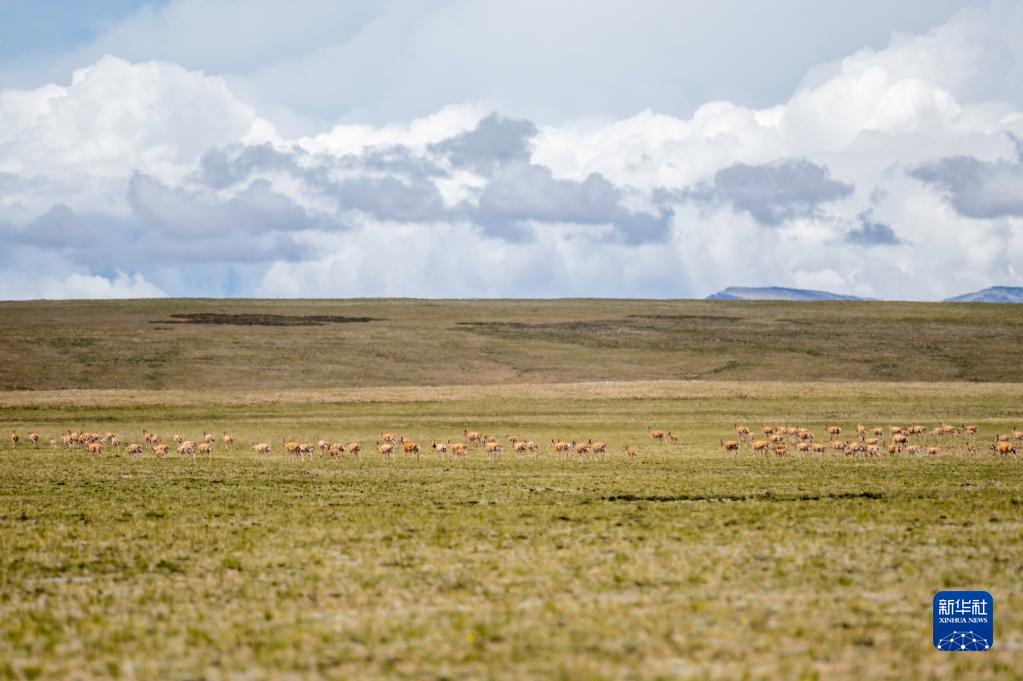這是在羌塘國家級自然保護區(qū)內(nèi)拍攝的藏羚羊(7月11日攝)。新華社記者 晉美多吉 攝