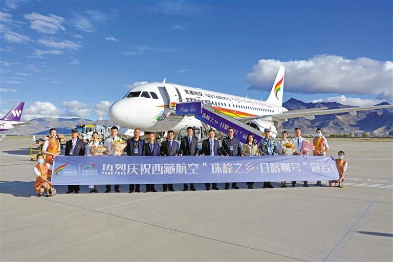 圖為西藏航空“珠峰之鄉(xiāng)·日喀則號(hào)”冠名儀式現(xiàn)場。記者 扎西頓珠 攝