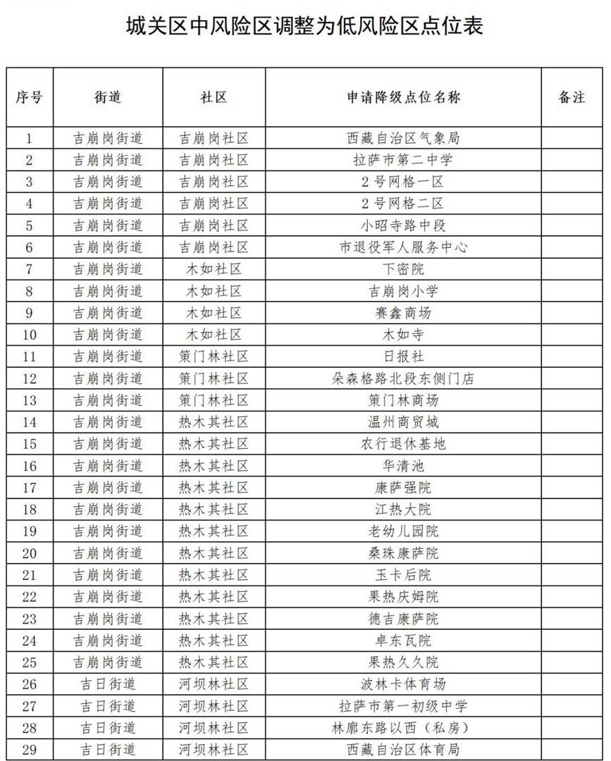 1.高風險區(qū)“拉薩之窗及其周邊”包括拉薩之窗、麗楓酒店,現已全部降為中風險區(qū);