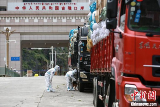 吉隆出入境邊防檢查站移民管理警察檢查車體?!⌒じ毁F 攝