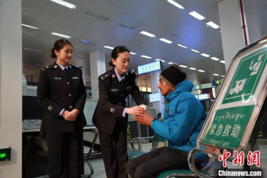 2018年12月,吉隆出入境邊防檢查站移民管理警察熱情服務緊急救助旅客?!⌒じ毁F 攝