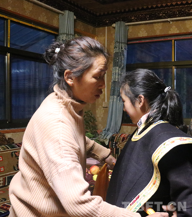 圖為西繞的孫女準(zhǔn)備穿工布傳統(tǒng)服裝,迎接新年