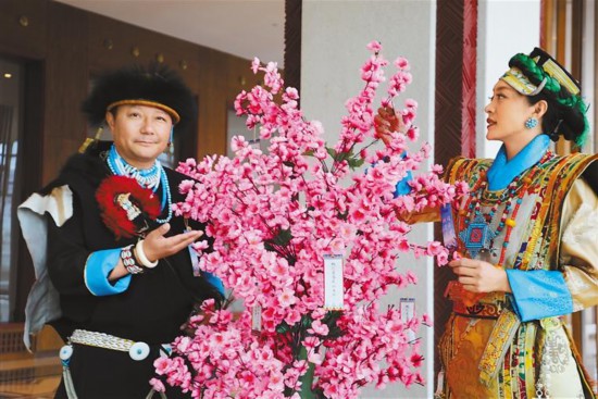 圖為推介會(huì)現(xiàn)場(chǎng),工作人員對(duì)民族服飾進(jìn)行展示。記者 格桑倫珠 李梅英 攝