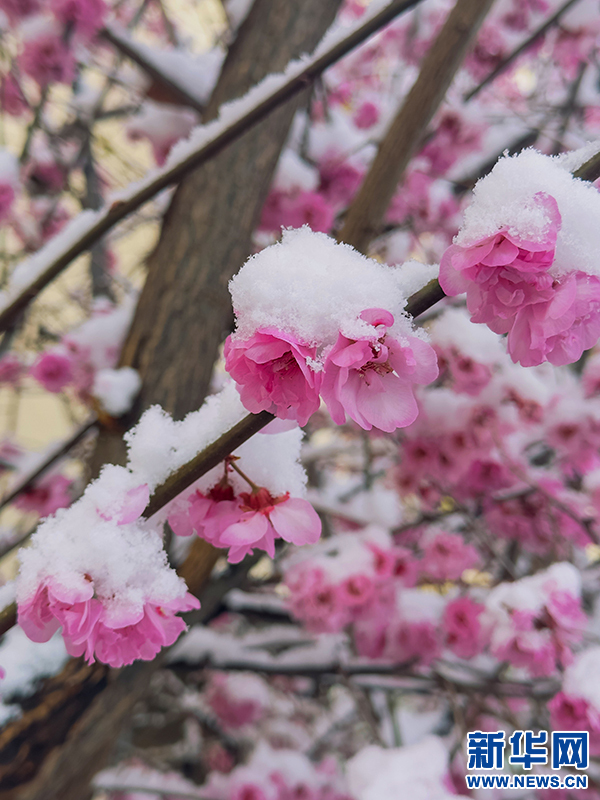 覆雪的花(3月30日攝)。新華網(wǎng) 柑丹鴦琦攝