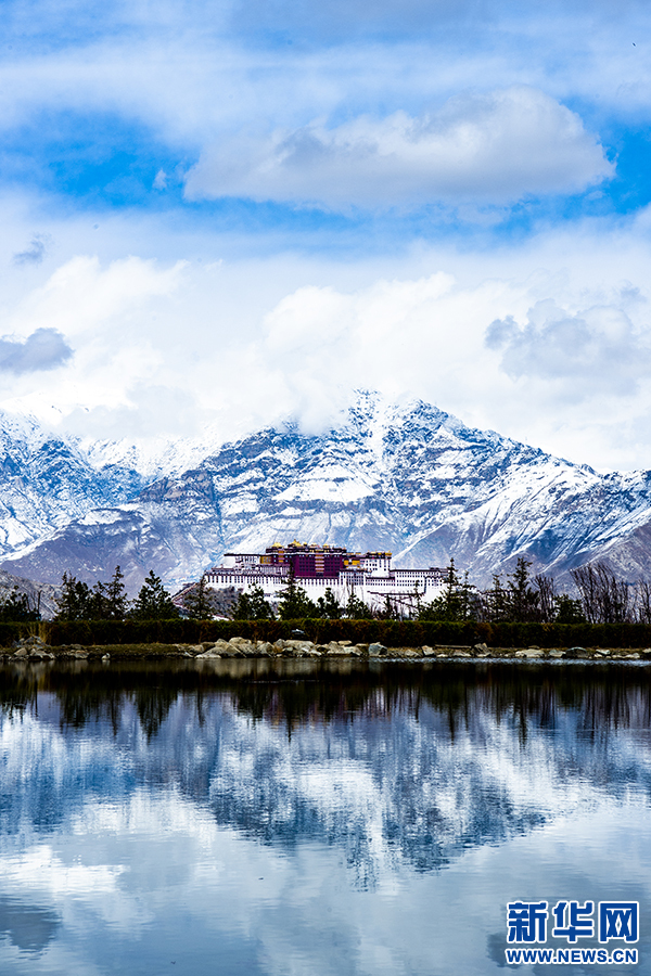 3月30日,在拉薩市南山公園拍攝的雪后布達(dá)拉宮。新華網(wǎng) 柑丹鴦琦攝