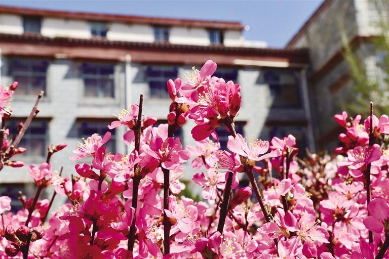 那么,去哪里查收這份“春日限定大禮包”呢?最近幾天,記者的朋友圈都被帕崩崗的美景霸屏了,一波又一波的朋友到這里打卡。除了去帕崩崗賞桃花,更不容錯(cuò)過(guò)的一定是拉薩大街小巷以及公園中驚鴻一瞥的美景。宗角祿康公園植被繁茂、古樹較多,一到春季,玫粉色的榆葉梅綻放枝頭,層層花瓣在陽(yáng)光的照耀下嬌俏動(dòng)人,一樹粉色花朵倒映在幽綠的湖水中,盡顯詩(shī)意。此外,緊鄰羅布林卡的羅堆東路也有意想不到的美景,每到這個(gè)季節(jié),紅葉李便會(huì)沿路盛開,淡粉色的花瓣搭配深紅色的花蕊,甚是好看。金珠西路沿途的景色也令人耳目一新,淡粉色的花朵肆意綻放,等紅燈時(shí)的心情因這些花朵變得不再焦灼。