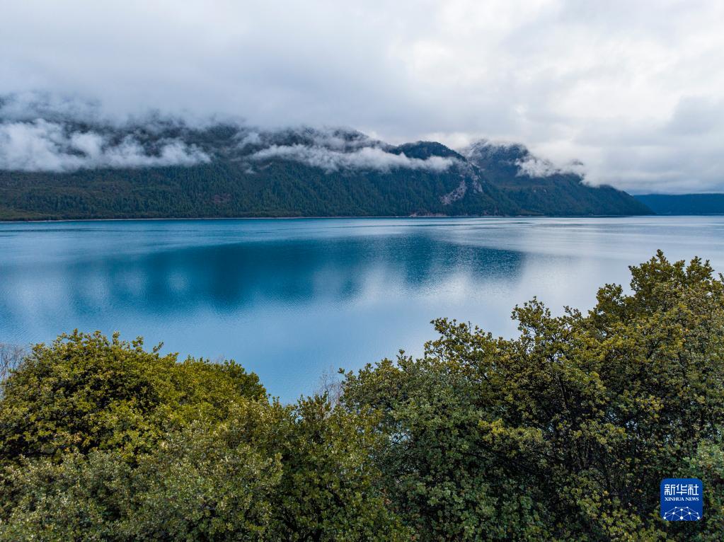 4月17日拍攝的巴松措(無(wú)人機(jī)照片)。新華社記者 曹檳 攝